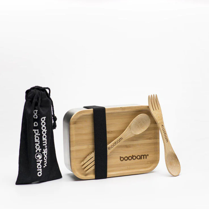 Μαζί με αυτό το κομψό τάπερ, θα λάβετε ένα σετ από φορητό φυσικό κουτάλι μπαμπού, πιρούνι, μαχαίρι σε 2 πακέτα σε μια πρακτική βαμβακερή τσάντα! είναι δώρο για εσάς ή τα παιδιά, για να απολαμβάνουν τις καλύτερες στιγμές της ημέρας τους χωρίς πλαστικό.
