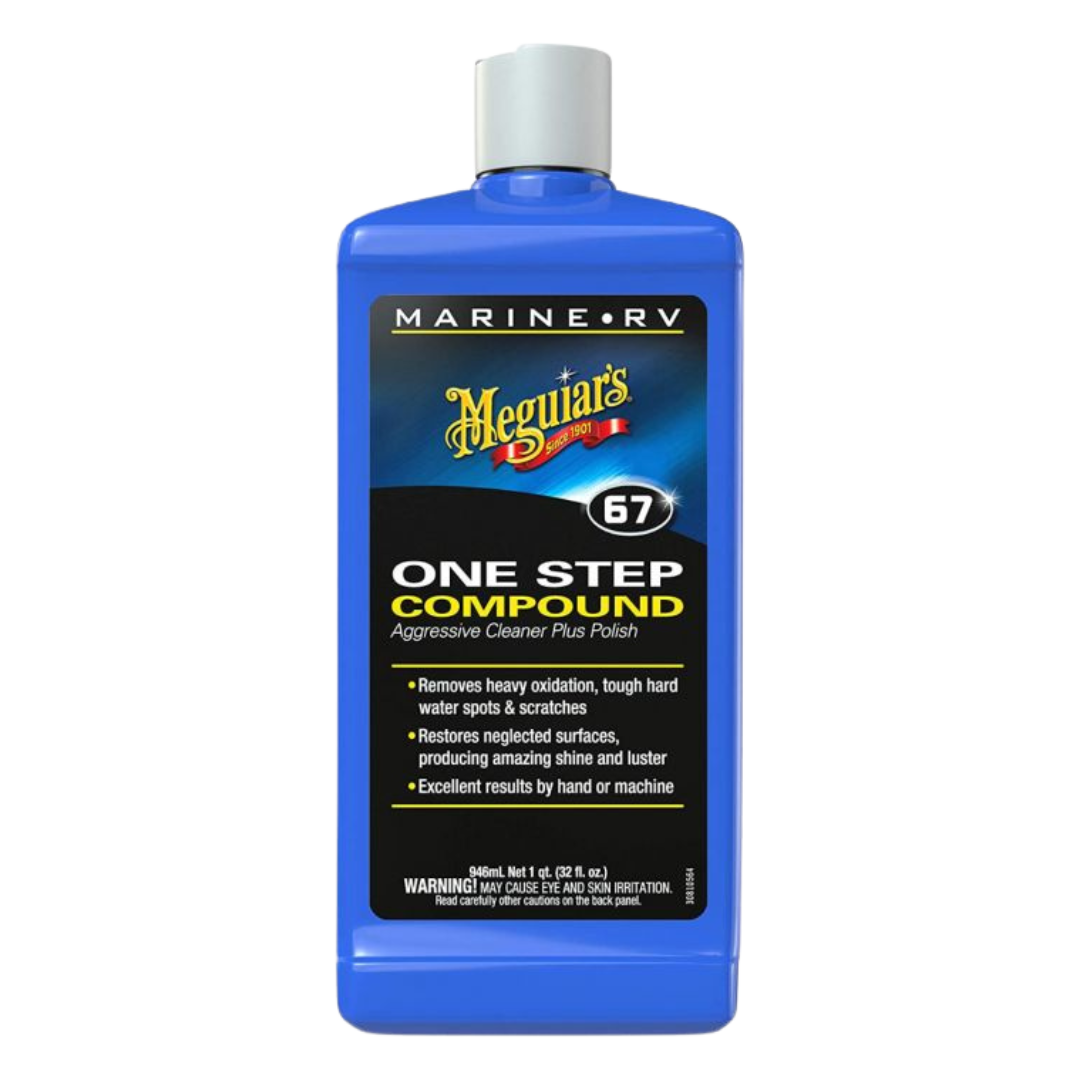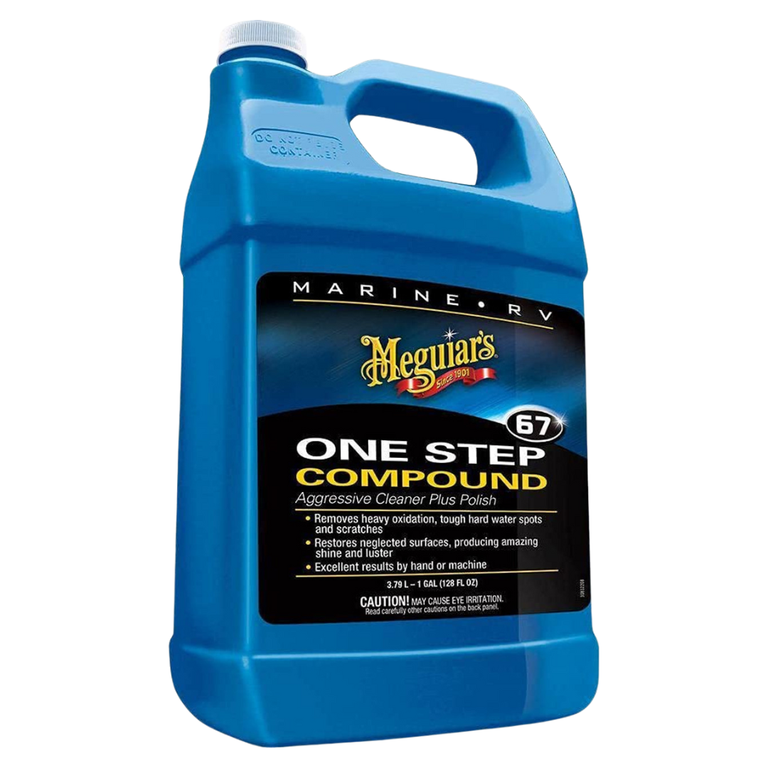 Meguiar’s Marine/RV One Step Compound is an advanced aggressive, yet safe cutting compound with polish that cleans and restores gloss to gel coat surfaces in one step.