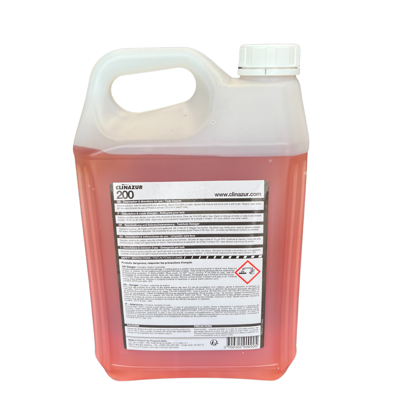 Clinazur 200 Teak Cleaner is a concentrated solution for the ultimate cleaning and removal of stains, salts, etc. It cleans wooden decks and its action allows it to penetrate the wood for deep cleaning. In the 2nd phase, 201 is applied.