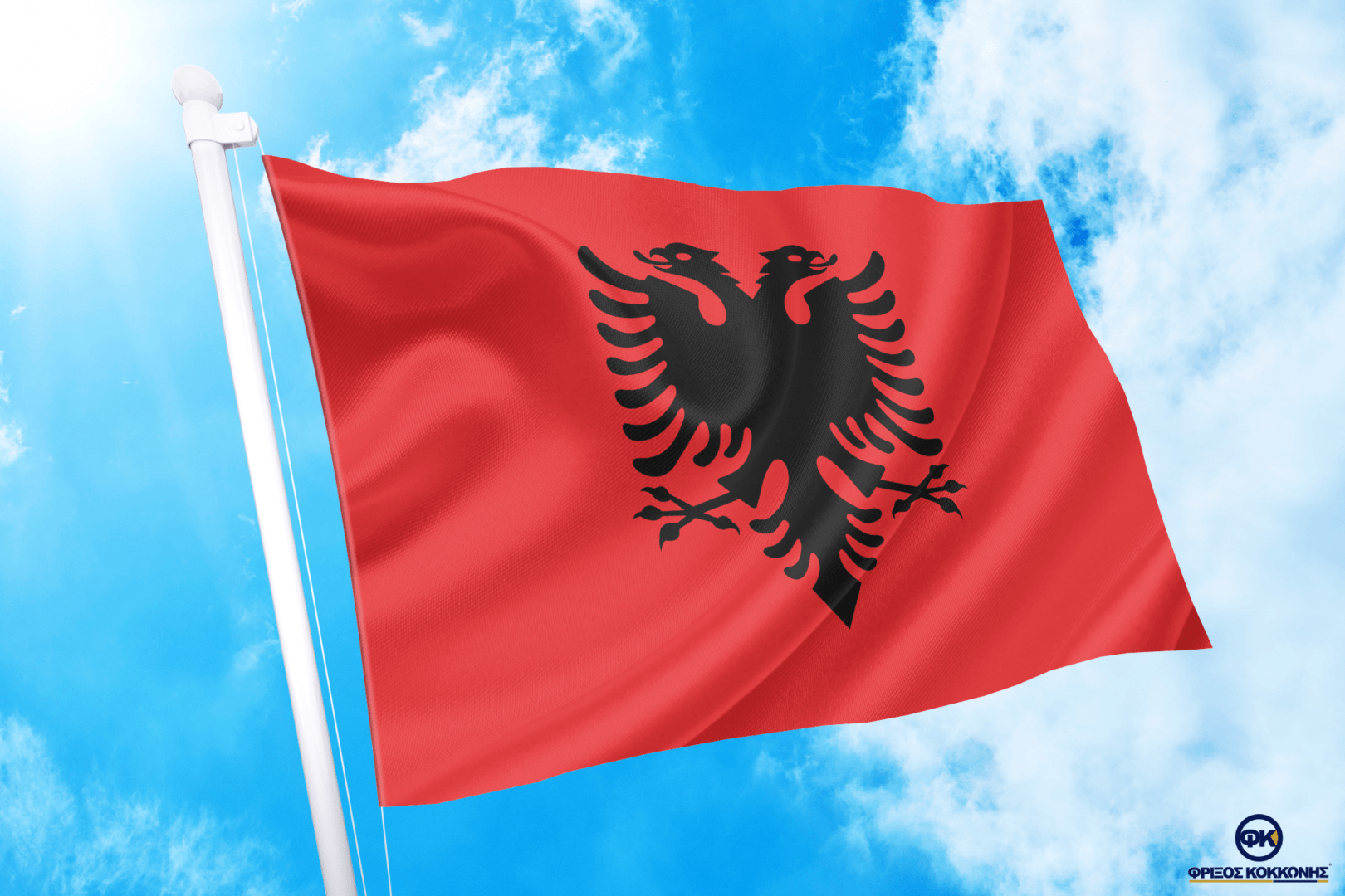 Quality Albanian flags made from polyester material, ideal for using on a boat.