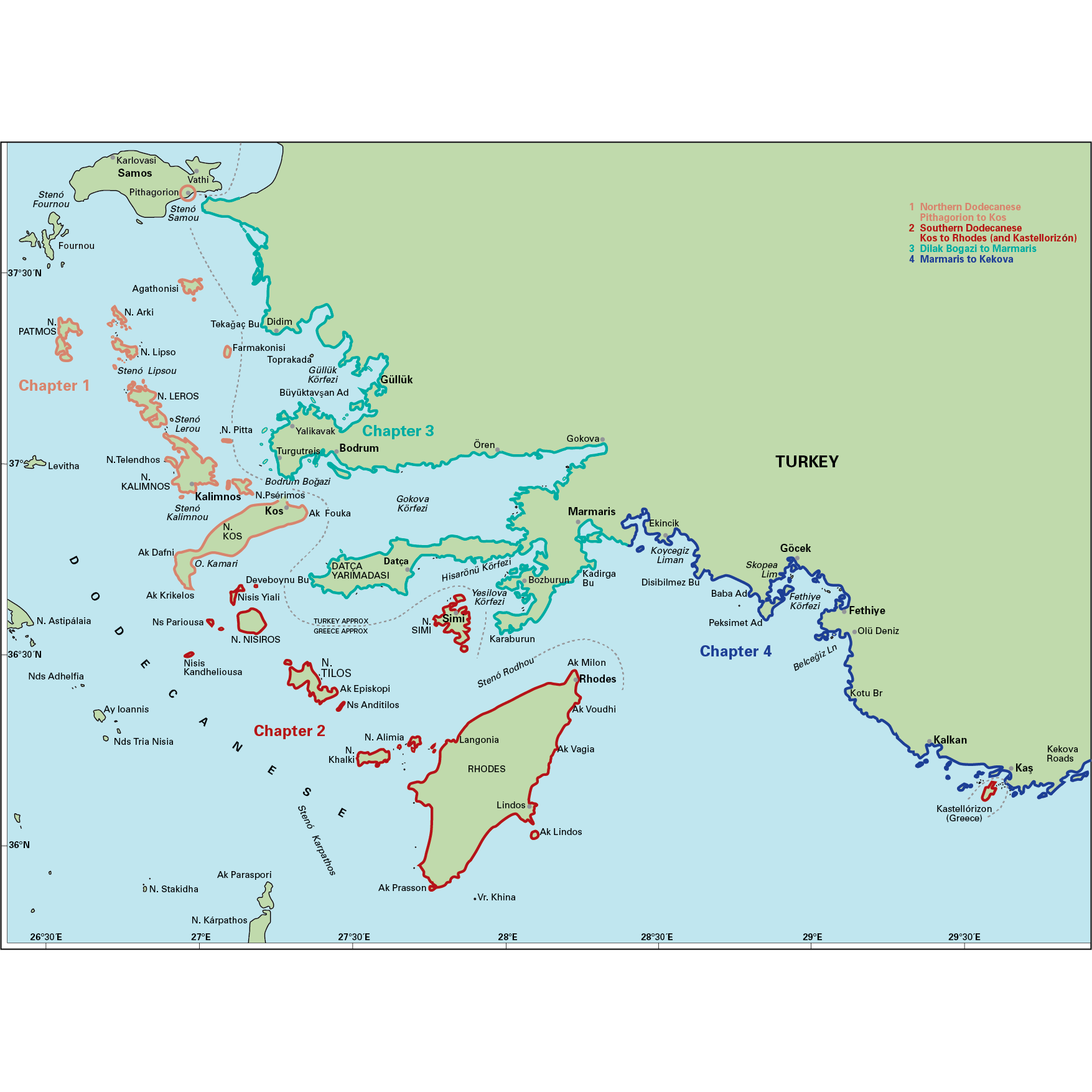 Greek Dodecanese islands and the Turkish coast from the Samos Strait as far east as Kas and Kekova