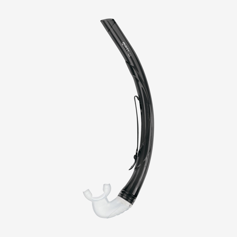 Snorkel for adults with curved and ergonomic structure. Integrated snorkel holder for an easy and intuitive use of the device.