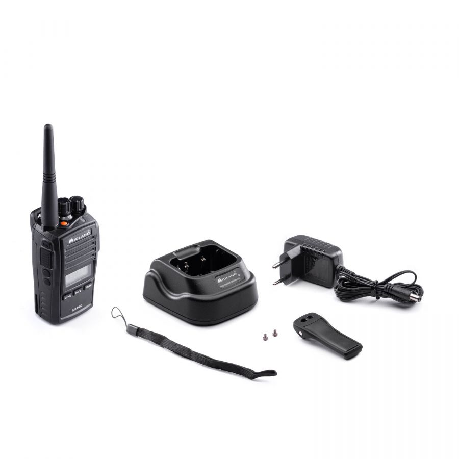 The Midland G18 Pro is a very reliable and easy-to-use professional radio. It operates in the PMR446 band, is free to use without the need for a licence and guarantees clear communications even in very noisy environments. It guarantees extended use of up to 19 hours thanks to the 1600 mAh lithium-ion battery and includes a smart quick charger.