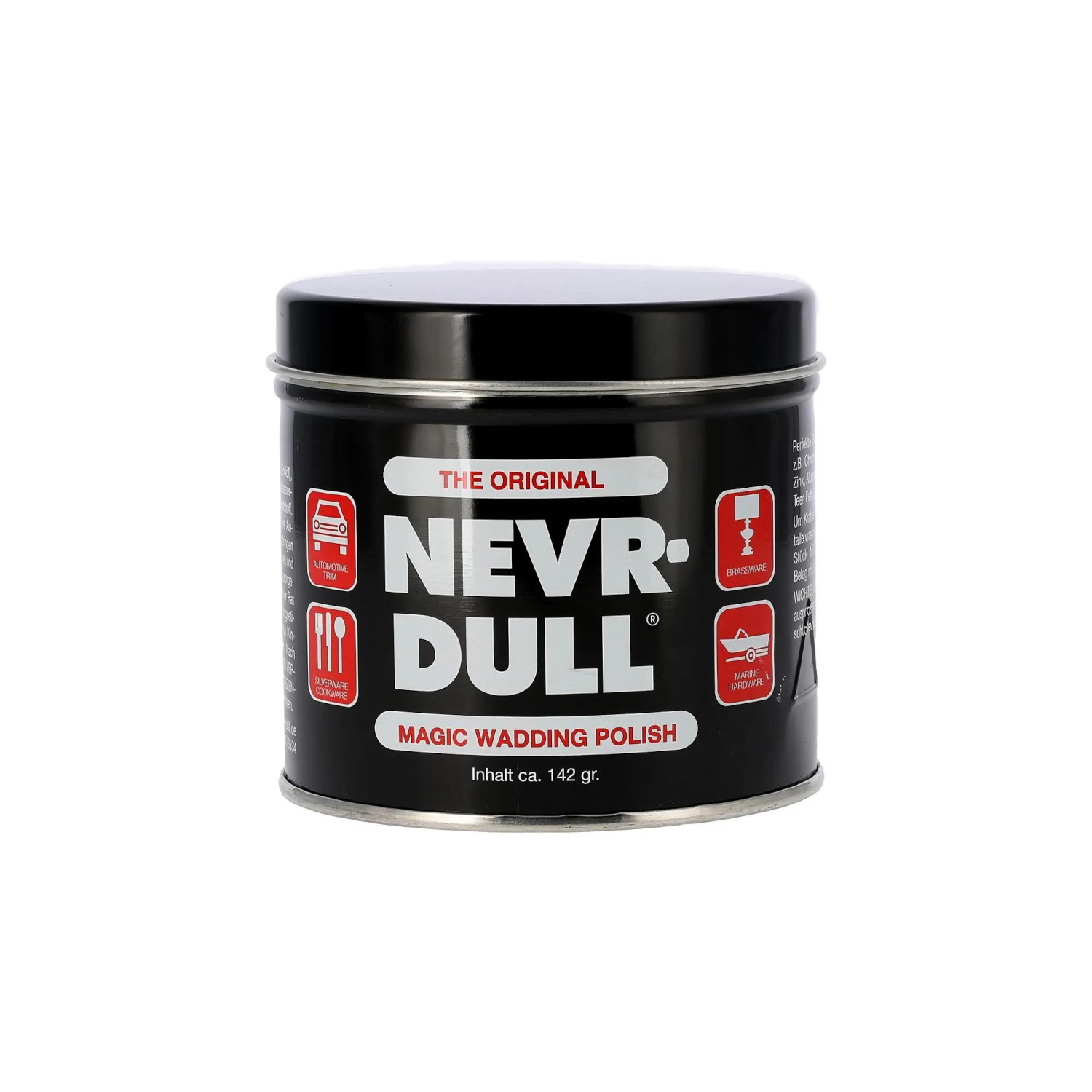 NEVR-DULL® is an extraordinary cleaning wonder that shines all metals with sparkling ease. Each can contains a generous supply of specially treated cotton wadding cloth. Simply remove a piece of wadding from the can and rub it thoroughly over the surface to be polished. Not for use on laquered or painted surfaces. Cover lid when not in use. Gloves recommended.